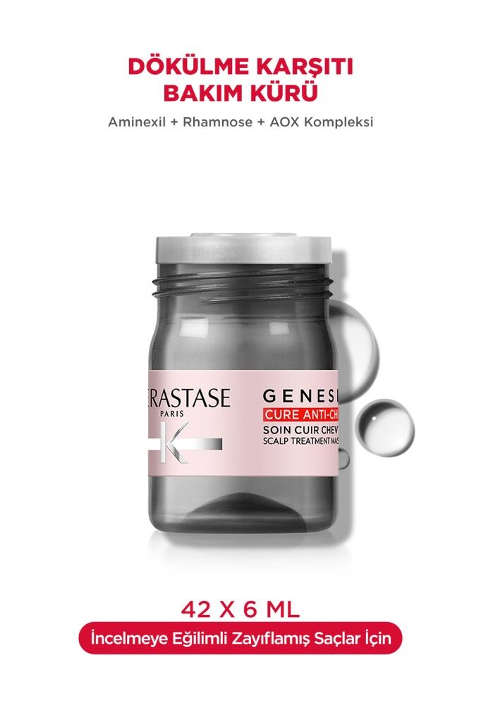 - Kerastase Genesis Fortifying Ampul Kürü, stres, hormonal değişim ya da çevresel faktörler nedeniyle yaşanan reaktif (geçici) saç dökülmelerine karşı etkili bir çözümdür.