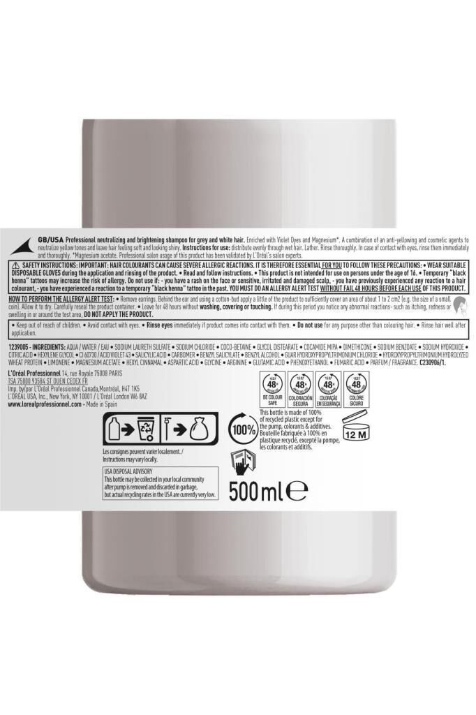 Serie Expert Silver Çok Açık Sarı Gri ve Beyaz Saçlar İçin Renk Dengeleyici Mor Şampuanı 500 ml